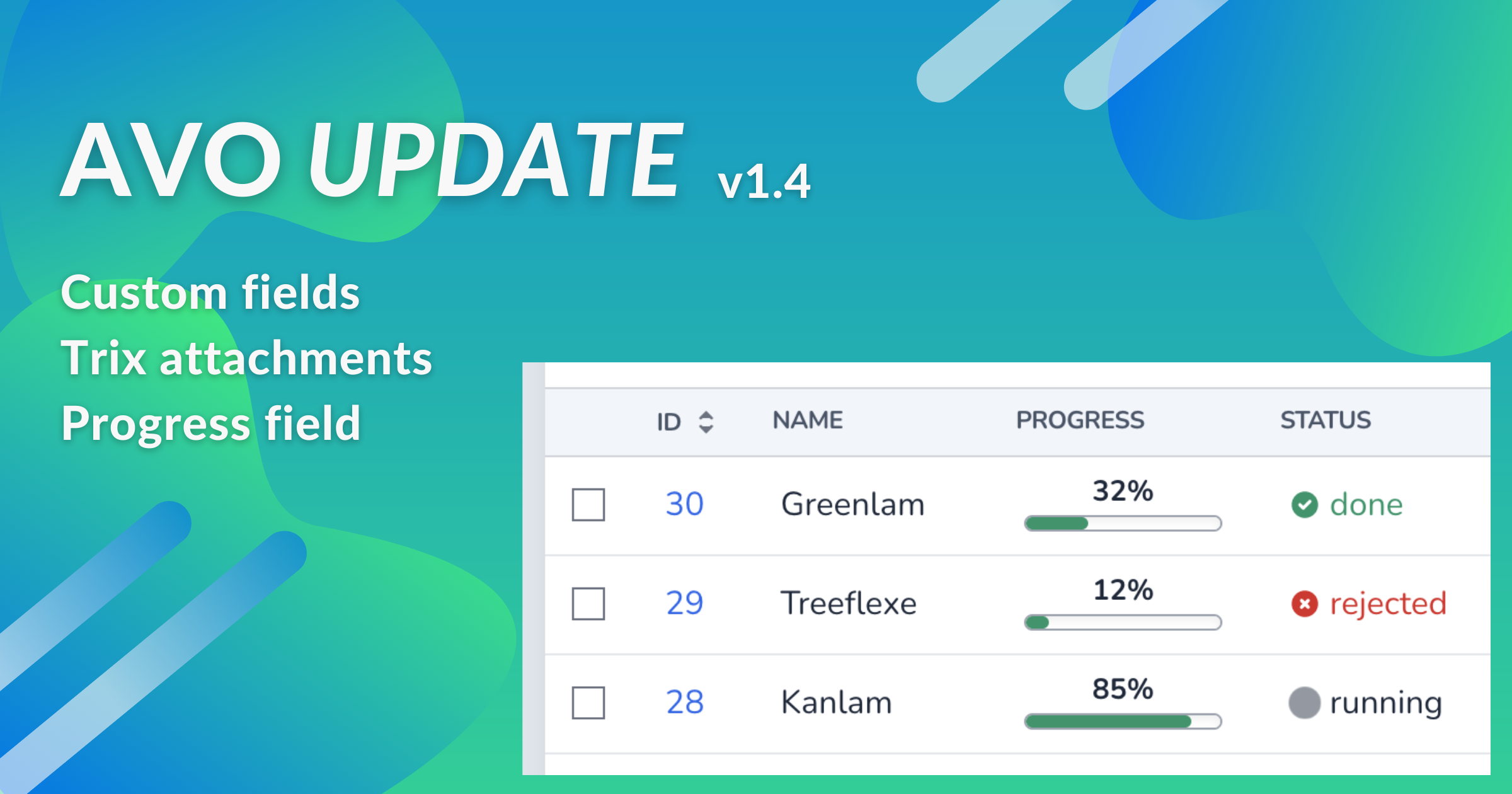 While we were thinking of an excellent example for a custom field, we built the progress bar, and in the end, it was too pretty not to add it to the list.